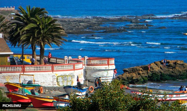 A solo 6 km. al norte, está el pueblo de Pichilemu, que en idioma nativo significa Bosque Pequeño. Sus primeros habitantes fueron los Promaucaes. Es un pueblo de 13.000 habitantes, que data de 1891.